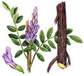 Содержит гликозид глицирризин, который распадается в организме с образованием глицерризиновой кислоты, близкой по строению к стероидным гормонам. Наиболее важным свойством биологически активных веществ корня солодки является выраженное противовоспалительное действие - купирование воспалительных и аллергических реакций, в том числе вызываемых гистамином, серотонином и брадикинином.